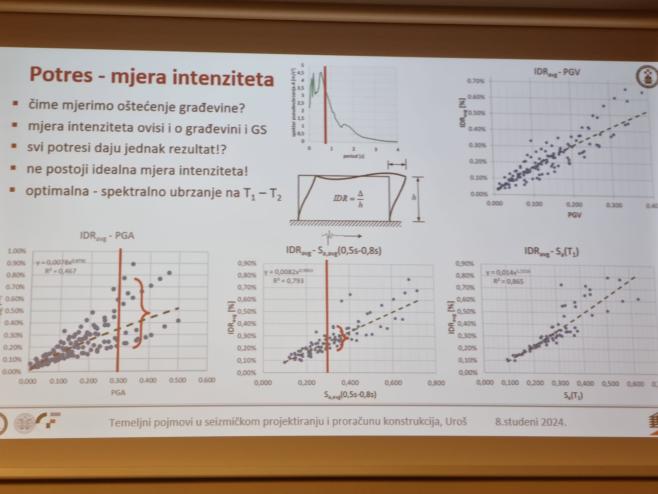 Mario Uros podsjetio je na temeljne pojmove u seizmičkom projektiranju i proračunu konstrukcija, dok je Juraj Pojatina prezentirao praktična iskustva u projektiranju sanacija nakon potresa. Zaključno predavanje održao je arhitekt Marko Dabrovic o tome kako nastaju kompleksni projekti i koji su sve izazovi projektantske djelatnosti danas u Hrvatskoj.