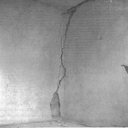 ‒ pojavu strmih ili gotovo vertikalnih pukotina na plohama debelih zidova (rastresanje)