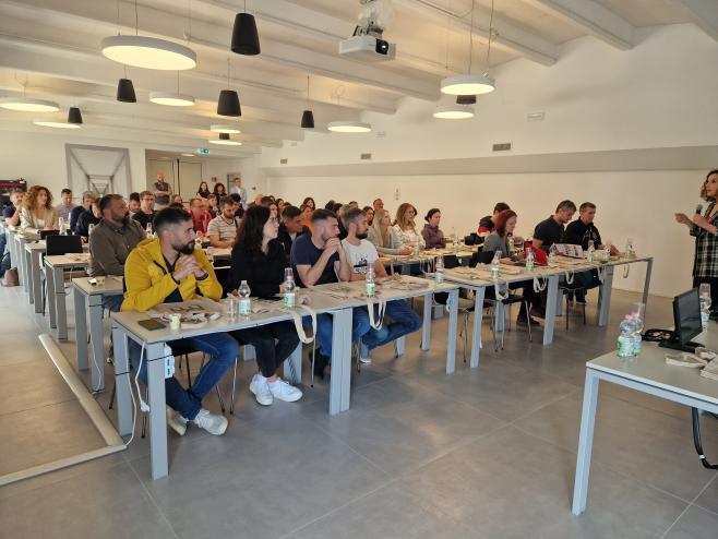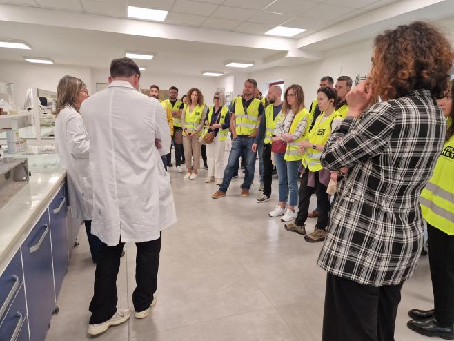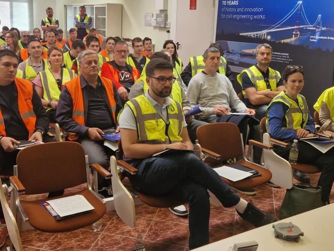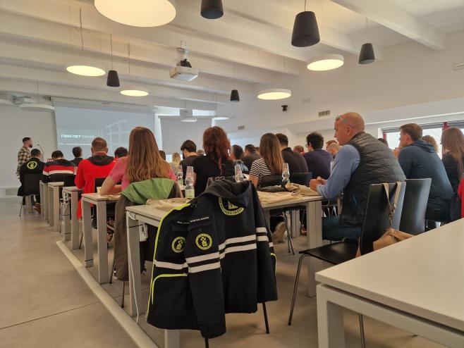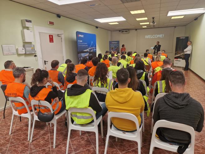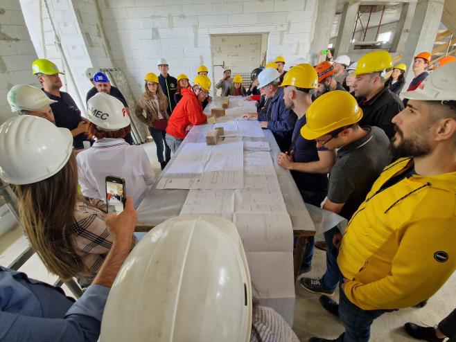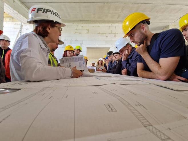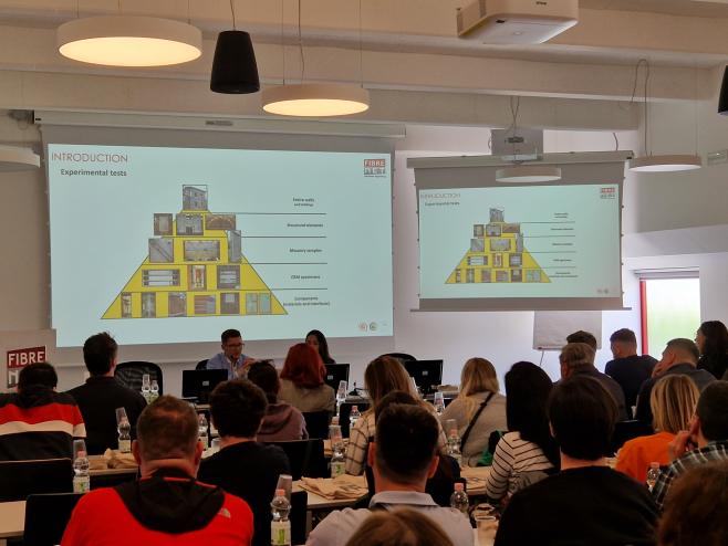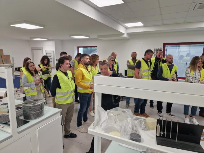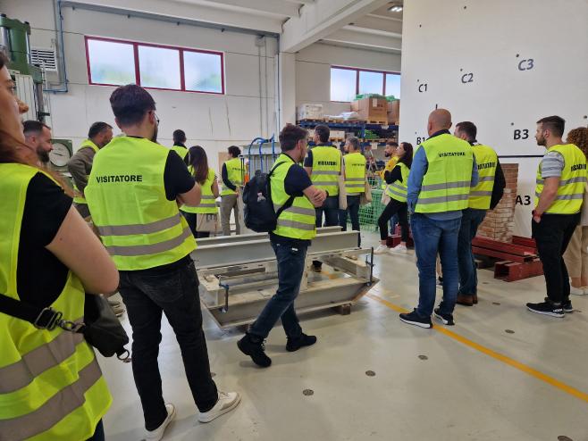 U četvrtak 23.5. u sklopu programa edukacije organiziran je obilazak pogona tvornice Fibre Net u Udinama i radionica o proračunu pojačanja FRCM sustava. Isti je dan naša grupa obišla i gradilište zgrade s ugrađenim seizmičkim izolatorima u mjestu Pordenone (organizirano od strane kolega firme FIP MEC). Drugi dan, u petak 24.5., edukacija je nastavljena u Padovi u pogonu firme FIP MEC gdje je naša grupa sudjelovala u seminaru o seizmičkoj izolaciji te obišla laboratorije. Pri obilasku laboratorija smo imali priliku i iz prve ruke vidjeti ispitivanje seizmičkih izolatora i prigušivača, ali dobiti i detaljnije informacije o cijelom procesu projektiranja, izrade, ispitivanja i naposljetku ugradnje seizmičkih izolatora na zgrade.